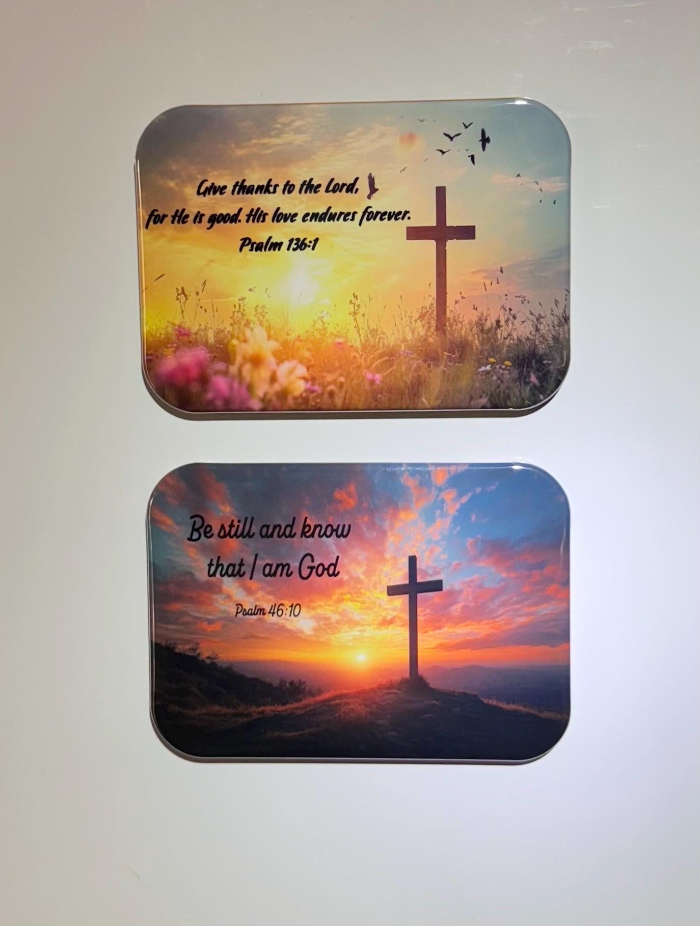 Bible verse magnet Psalm 46:10 Psalm 136 Christian Religious Faith God Jesus Cross
