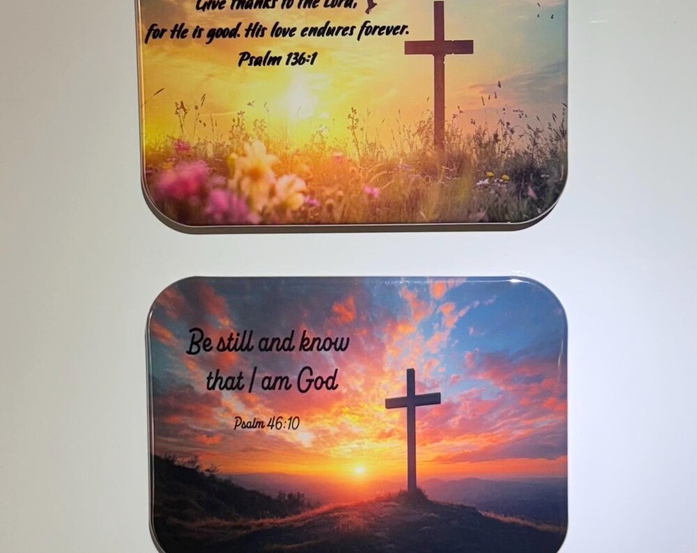 Bible verse magnet Psalm 46:10 Psalm 136 Christian Religious Faith God Jesus Cross