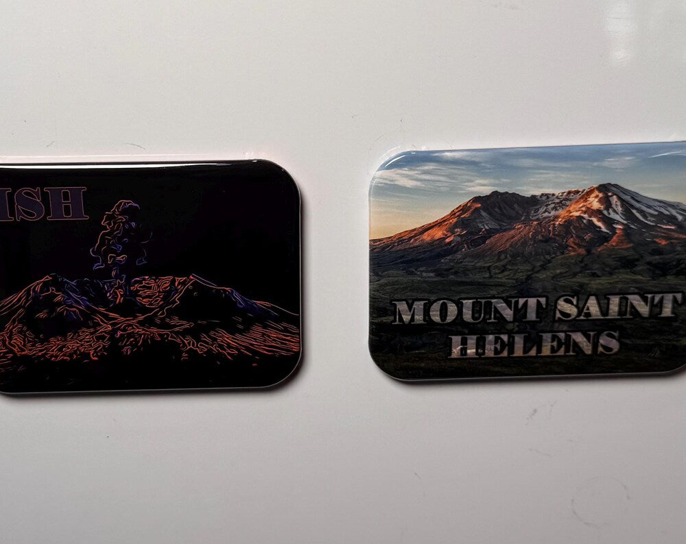They have a glossy Mylar finish. Mount Saint Helens is a beauty. We have a neon looking magnet and a more natural picture of the mountain. A great keepsake after visiting St Helens.