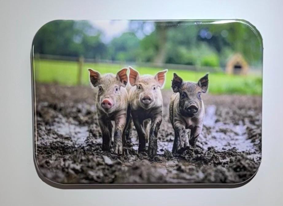 Pig magnet, dirty pig magnet, muddy pig magnet, pigs, pig, pigs magnet, fridge magnet, pig fridge magnet, farm animal magnet